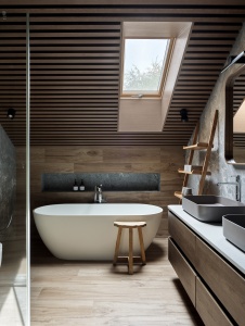 Фото интерьера ванной комнаты дома в скандинавском стиле