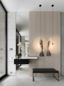 Освещение входной зоны, если это своего рода буфер между гардеробом и холлом или главной частью дома, может быть загадочным и таинственным. Такой ход интригует и дает возможность поразмышлять о развитии интерьера остальных помещений.