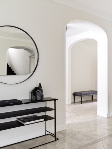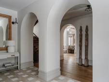 Во-первых, входная зона просто обязана быть просторной! В загородном доме мебели должно быть по минимуму. И обязательно должны присутствовать зеркала в полный рост: их наличие необходимо чисто психологически.