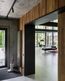 Фото интерьера входной зоны деревянного дома в современном стиле