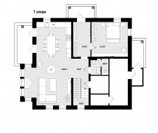 Главной чертой интерьера маленького дома является рациональность и возможность предоставления личного пространства каждому жителю. Прекрасным дизайнерским решением в данном случае станет использование разнообразной трансформируемой мебели, способной выгодно сэкономить полезную площадь, не лишая обитателей высокого уровня комфорта. Если в доме присутствует лестница, разумным решением станет использование подлестничного пространства, в котором может быть расположен встроенный шкаф.