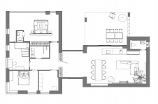 Главной чертой интерьера маленького дома является рациональность и возможность предоставления личного пространства каждому жителю. Прекрасным дизайнерским решением в данном случае станет использование разнообразной трансформируемой мебели, способной выгодно сэкономить полезную площадь, не лишая обитателей высокого уровня комфорта. Если в доме присутствует лестница, разумным решением станет использование подлестничного пространства, в котором может быть расположен встроенный шкаф.
