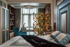 Фото интерьера спальни пентхауса в стиле ар-деко