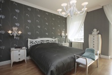 В спальне особую роль играет текстильное оформление окон. Обычно используют два вида штор. Ближние к окну – «ночные шторы». Они могут быть светонепроницаемы, тогда используют ткань black out. Можно ограничиться и плотной тканью на подкладке. У таких штор есть еще одна полезная функция – звукопоглощение.