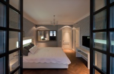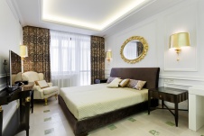 Фото интерьера спальни двухуровневой квартиры в стиле неоклассика