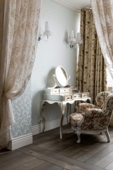 Второй ряд – декоративный текстиль. Его украшают подхватами, кистями. Декоративные шторы не являются «рабочими», они зафиксированы и предназначены для того, чтобы подчеркнуть общую декоративную идею.