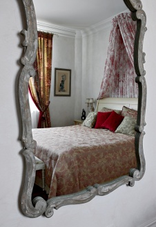 Тщательно продуманный интерьер спальни в стиле прованс, фото, которого замечательно отражают его изысканность и красоту, предусматривает наличие множества декоративных элементов. Здесь будут уместны открытки, вышивки, зеркала в ажурных рамках, расписные тарелочки, картинки, цветочные композиции.