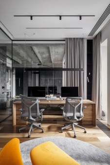 Фото интерьера кабинета двухэтажной квартиры в стиле лофт