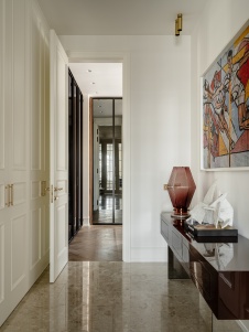 Фото интерьера входной зоны пентхауса в стиле неоклассика Фото интерьера коридора пентхауса в стиле неоклассика