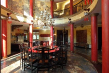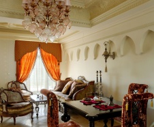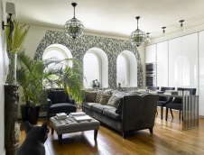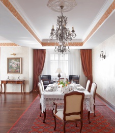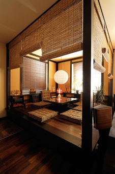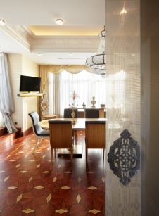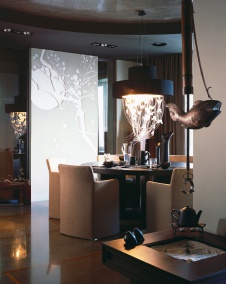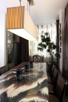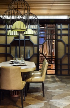 Фото интерьера столовой многоуровневой квартиры, пентхауса в восточном стиле