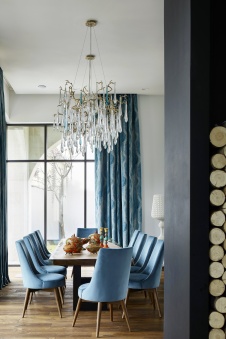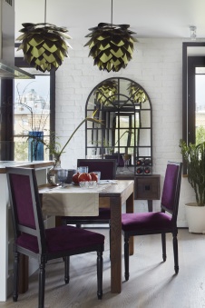 Фото интерьера столовой трехэтажного дома в стиле фьюжн
