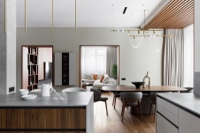 Эргономичным и удобным также является и совмещенный интерьер кухни со столовой, а фото могут четко передать особую атмосферу и красоту помещения. Зоны внутри комнаты обязательно должны сочетаться как между собой, так и в целом с общим дизайном квартиры. Здесь неприемлемо никакое противоречие. Рекомендуется использовать практичные легко моющиеся материалы. Пространство может быть поделено на зону для приема пищи, где в центре будет помещен вальяжный элегантный стол, рабочую зону, где будут выполняться приготовления различных гастрономических изысков, и барную территорию, где вечерами приятно будет испить бокал игристого вина или утром «на бегу» позавтракать.