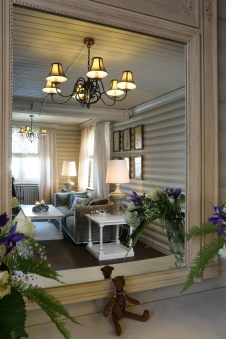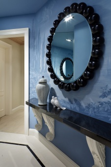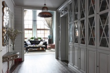Во-первых, входная зона просто обязана быть просторной! В загородном доме мебели должно быть по минимуму. И обязательно должны присутствовать зеркала в полный рост: их наличие необходимо чисто психологически.