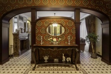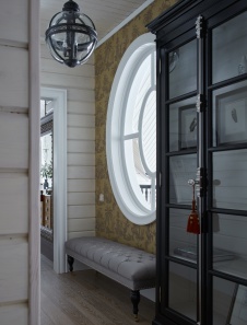 Во-первых, входная зона просто обязана быть просторной! В загородном доме мебели должно быть по минимуму. И обязательно должны присутствовать зеркала в полный рост: их наличие необходимо чисто психологически.