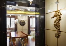 В оформлении этой зоны - собирательного образа дома, правильно использовать акцентные, самые эффектные приемы декорирования. Например, мозаичные панно, лепнину, авторскую мебель... Важно определить и центральный элемент, который акцентирует и удерживает внимание.