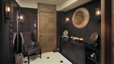 Чаще всего входную зону оформляют покрасками, декоративными штукатурками или обоями. Но она может быть решена абсолютно в любом материале: и в дереве, и в текстиле, и керамике и в коже.
