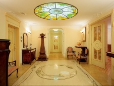 Во-первых, входная зона просто обязана быть просторной! В загородном доме мебели должно быть по минимуму. И обязательно должны присутствовать зеркала в полный рост: их наличие необходимо чисто психологически.