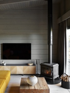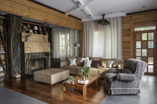 Фото интерьера каминной деревянного дома в современном стиле
