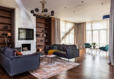 Фото интерьера каминной квартиры в современном стиле