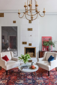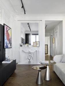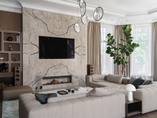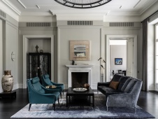 Фото интерьера каминной квартиры в неоклассическом стиле