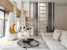 Фото интерьера каминной квартиры в стиле фьюжн