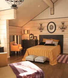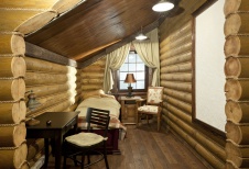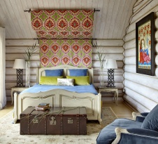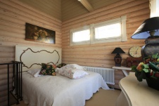 Фото интерьера спальни гостевого дома из оцилиндрованного бревна