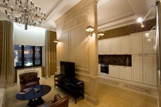 Фото интерьера кухни многоуровневой квартиры-пентхауса в стиле модерн
