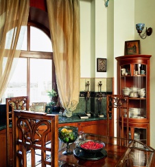 Фото интерьера столовой квартиры в стиле модерн с антиквариатом