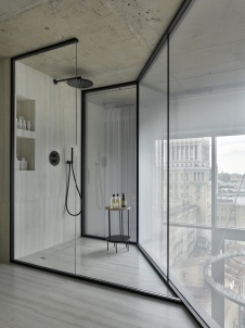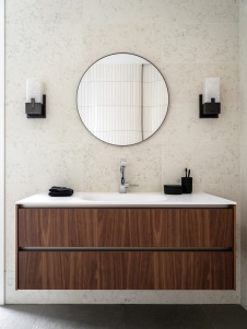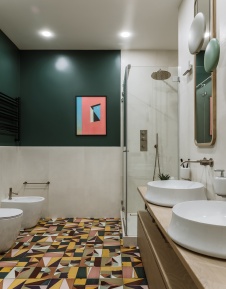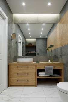 Фото интерьера санузла деревянного дома в стиле фьюжн