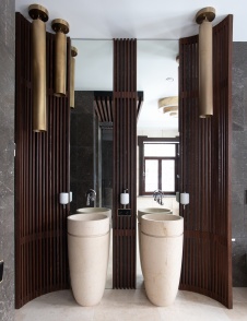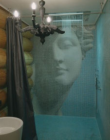 Фото интерьера санузла дома из дерева и камня в стиле эклектика