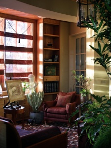 Фото интерьера кабинета квартиры в классике с застекленной верандой