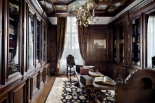 Фото интерьера библиотеки двухэтажной квартиры в классическом стиле