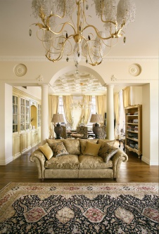 Фото интерьера библиотеки трехэтажного загородного дома в классическом стиле