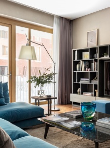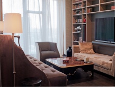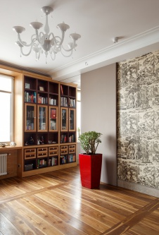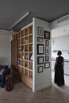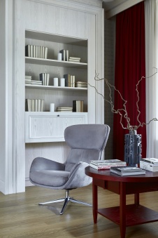Фото интерьера библиотеки видовой квартиры в современном стиле