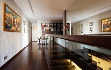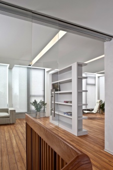 Фото интерьера библиотеки многоуровневой квартиры в современном стиле