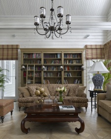 Фото интерьера библиотеки деревянного дома в английском стиле