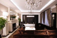 Традиционный дизайн гостиных в классическом стиле, фото которого указывают на данную особенность, предполагает наличие в интерьере изогнутых линий – они могут присутствовать в предметах мебели и отделке стен, а также потолка. Детали обстановки здесь принято использовать исключительно такие, которые выполнены из натуральных материалов, а также обтянуты качественным и прочным текстилем, ведь именно драпировки можно увидеть и на фото квартира в современном стиле где представлена.