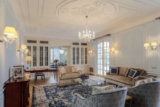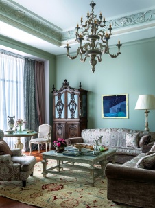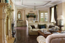 Классический подход к обустройству интерьера предполагает использование исключительно экологически чистого сырья – это может быть натуральное дерево, а также нетоксичные лакокрасочные материалы. Типичный интерьер гостиной в классическом стиле, фото которого имеются в текущей рубрике, предполагает обустройство пола исключительно ценными породами древесины в виде паркета или обычной доски. Нередко деревянные панели также присутствуют в оформлении стен, что позволяет придать пространству более благородный вид.