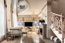 Фото интерьера гостиной двухэтажной квартиры в классическом стиле