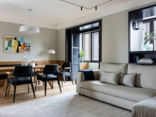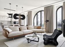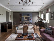 Фото интерьера гостиной пентхауса в стиле фьюжн