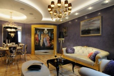 Фото интерьера гостиной комнаты квартиры в стиле гламур
