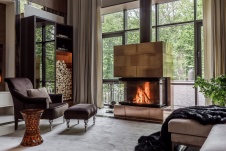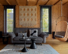 Фото интерьера зоны отдыха деревянного дома в современном стиле