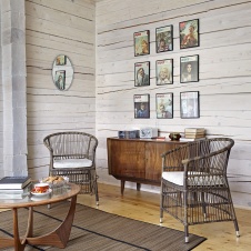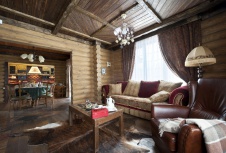 Фото интерьера зоны отдыха деревянного дома в стиле кантри