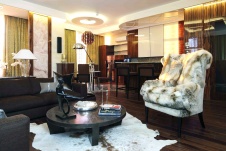 Фото интерьера зоны отдыха двухэтажной квартиры в стиле фьюжн