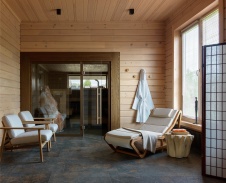 Фото интерьера зоны СПА деревянного дома в эко стиле