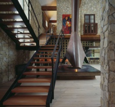 Фото интерьера каминной дома из дерева и камня в стиле эклектика