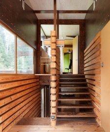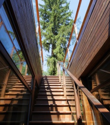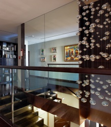 Фото лестницы трехэтажного дома в стиле фьюжн