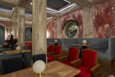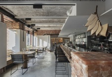 Фото интерьера зала ресторана ресторанного комплекса в стиле минимализм