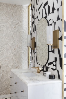 Фото интерьера гостевого санузла деревянного дома в стиле фьюжн