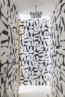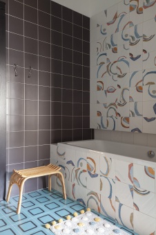 Фото интерьера санузла деревянного дома в стиле фьюжн